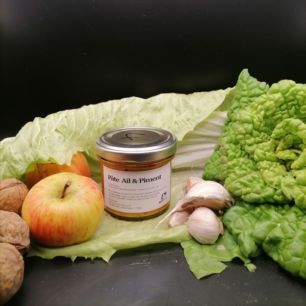 Notre pâte d'ail frais..avec un peu de piment d'Espelette pour pains à l'ail, cuisiner (ou en tartine pour les inconditionnels de