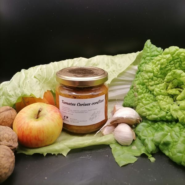 Mélange de tomates cerises, grillées avec oignons, piment, romarin. Petit accompagnement au goût relevé avec toute la saveur de l'été...