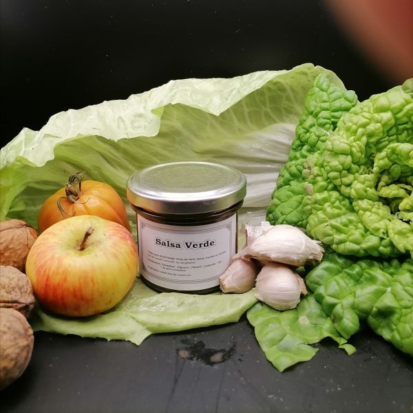 Sauce relevée à base de tomatillos, oignons, piments et coriandre. Parfait comme dip pour des chips de Maïs, grillades, viandes froides, etc...