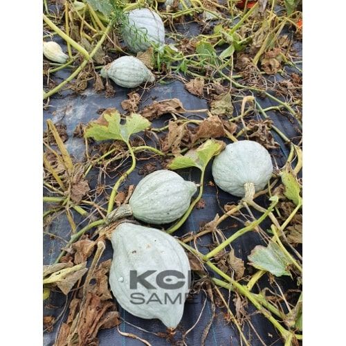Grande courge à la peau grise, la chair dense et orange, excellente conservation et excellent saveur.
